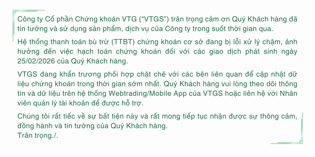 Kính gửi Quý Khách hàng, Công ty cổ phần Chứng khoán VTG (“VTGS”) xin chân…